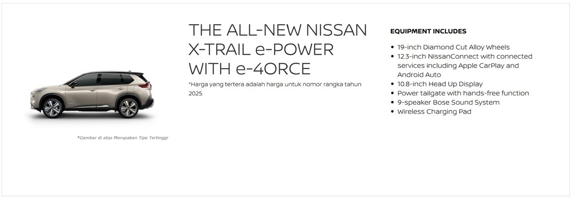 The All-New X-TRAIL e-POWER With e-4ORCE menghadirkan kualitas tinggi dengan fungsi fitur yang siap menghadapi segala kebutuhan Anda dan keluarga.