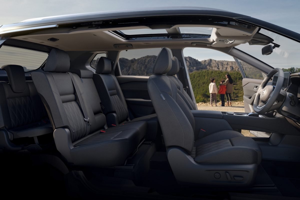 Interior yang luas dapat dikonfigurasi dengan kursi baris kedua yang dapat disesuaikan, kursi baris ketiga untuk dua penumpang tambahan, serta bagian bagasi yang dapat dibagi untuk menampung dan mengamankan berbagai jenis muatan.